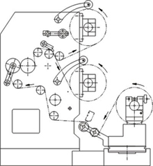 該機適用于BOPP、PET、CPP、CPE、PVC、PE、鋁箔、紙張等各種卷狀材料的分條、 在生產過程中根據不同需要對材料進行切邊、分切等